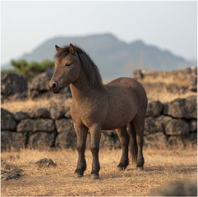 제주 조랑말은 체구가 작고 안정적인 신체 구조를 갖추고 있어